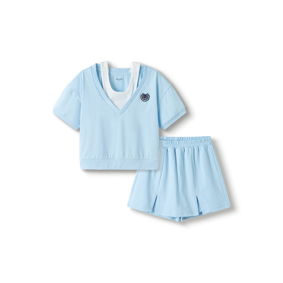 吸湿速干女童套装夏季儿童装2025新款夏装中大童两件套学院风 620421