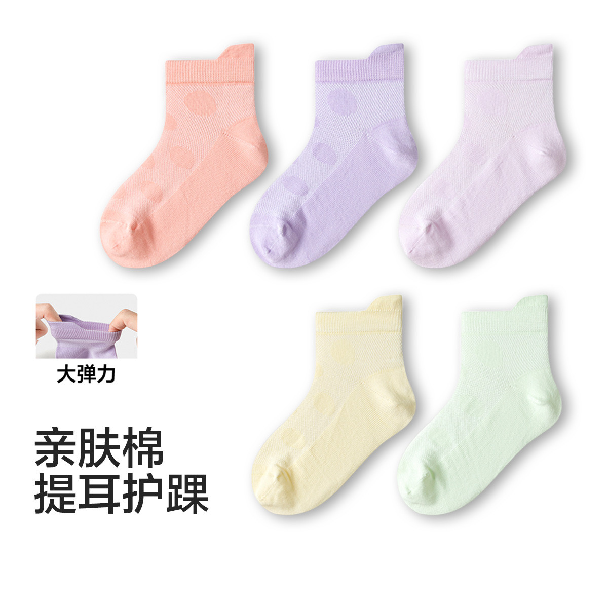儿童船袜夏季新款网眼袜棉薄透气男童女童短袜纯色日常柔弹五双装 894597