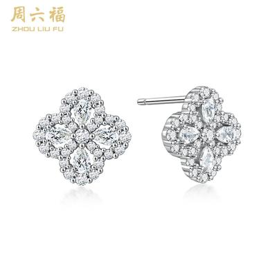 周六福 S925银梦枕星河四叶草耳钉 ZLFJ091690