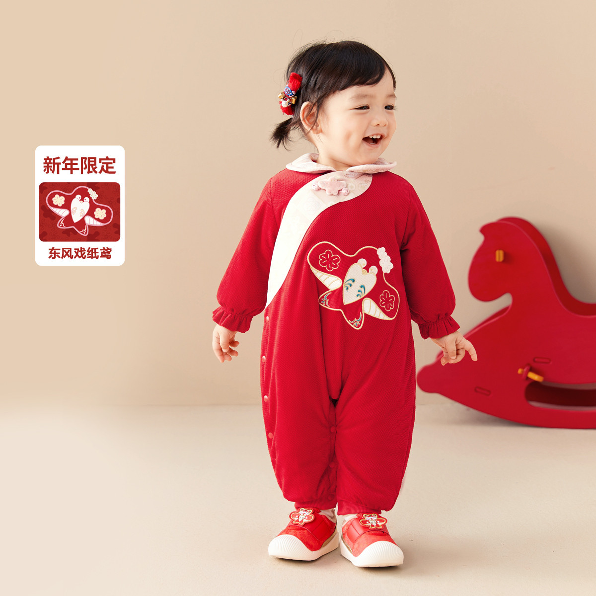 国风新生儿衣服宝宝春秋款婴儿连体衣周岁礼服男童女童哈衣爬服 246021