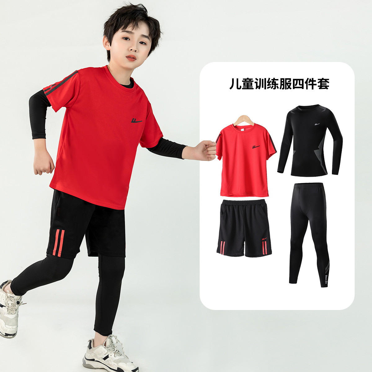 儿童训练服四件套春季两穿时尚运动舒适弹力儿童套装 862355