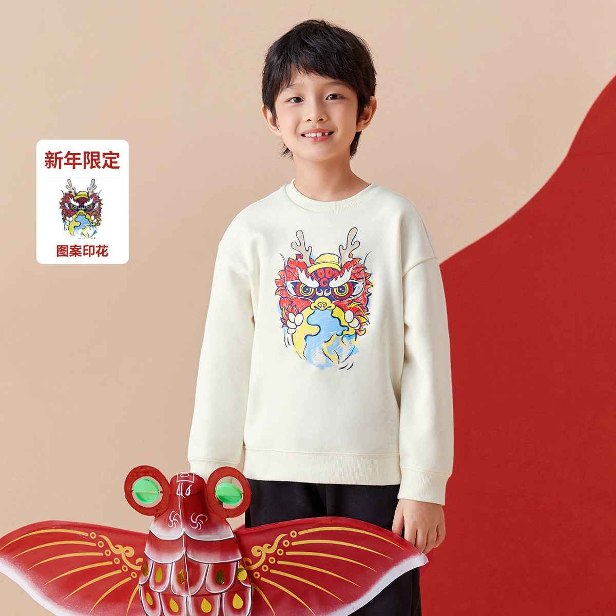 国风春秋装儿童卫衣男童中大童龙年内里加绒圆领套头上衣潮酷童装 281605