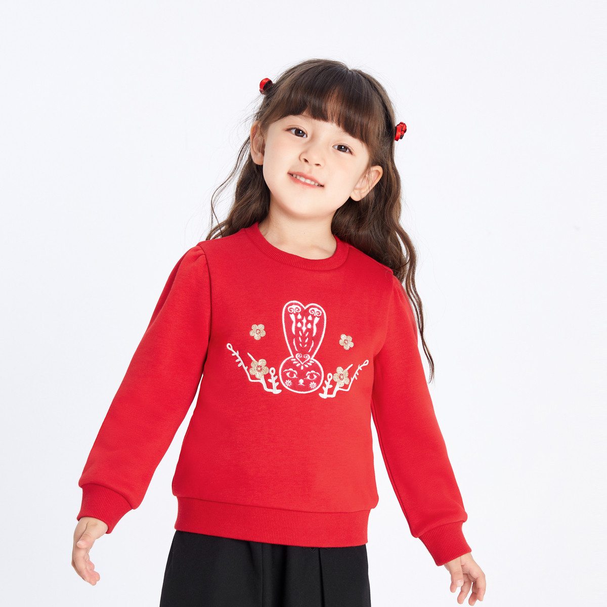 设计师联名国风刺绣女童卫衣春秋儿童上衣女小童衣服长袖加绒暖 800645