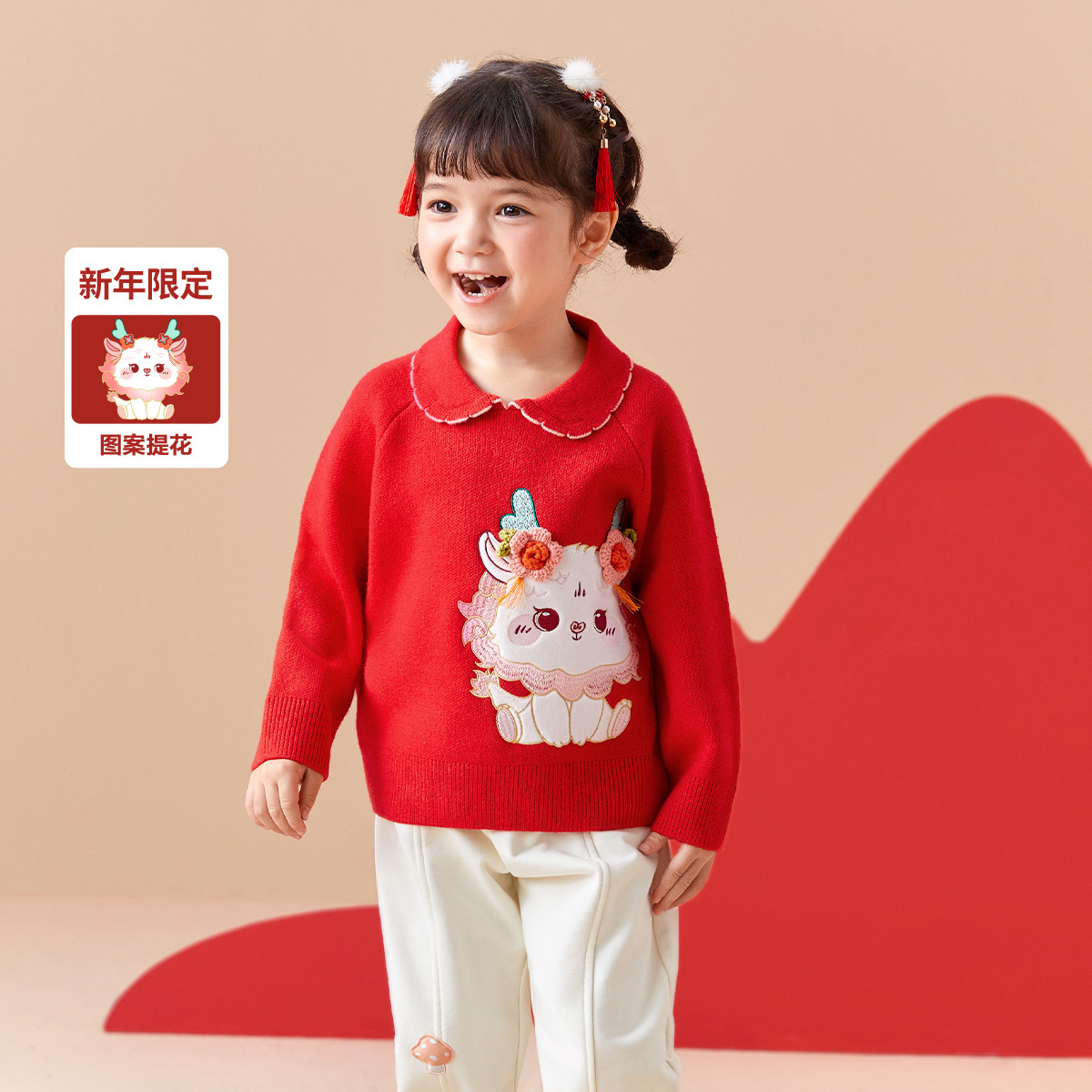 国风翻领毛衣女童宝宝春秋装儿童针织衫上衣童装可爱 694341