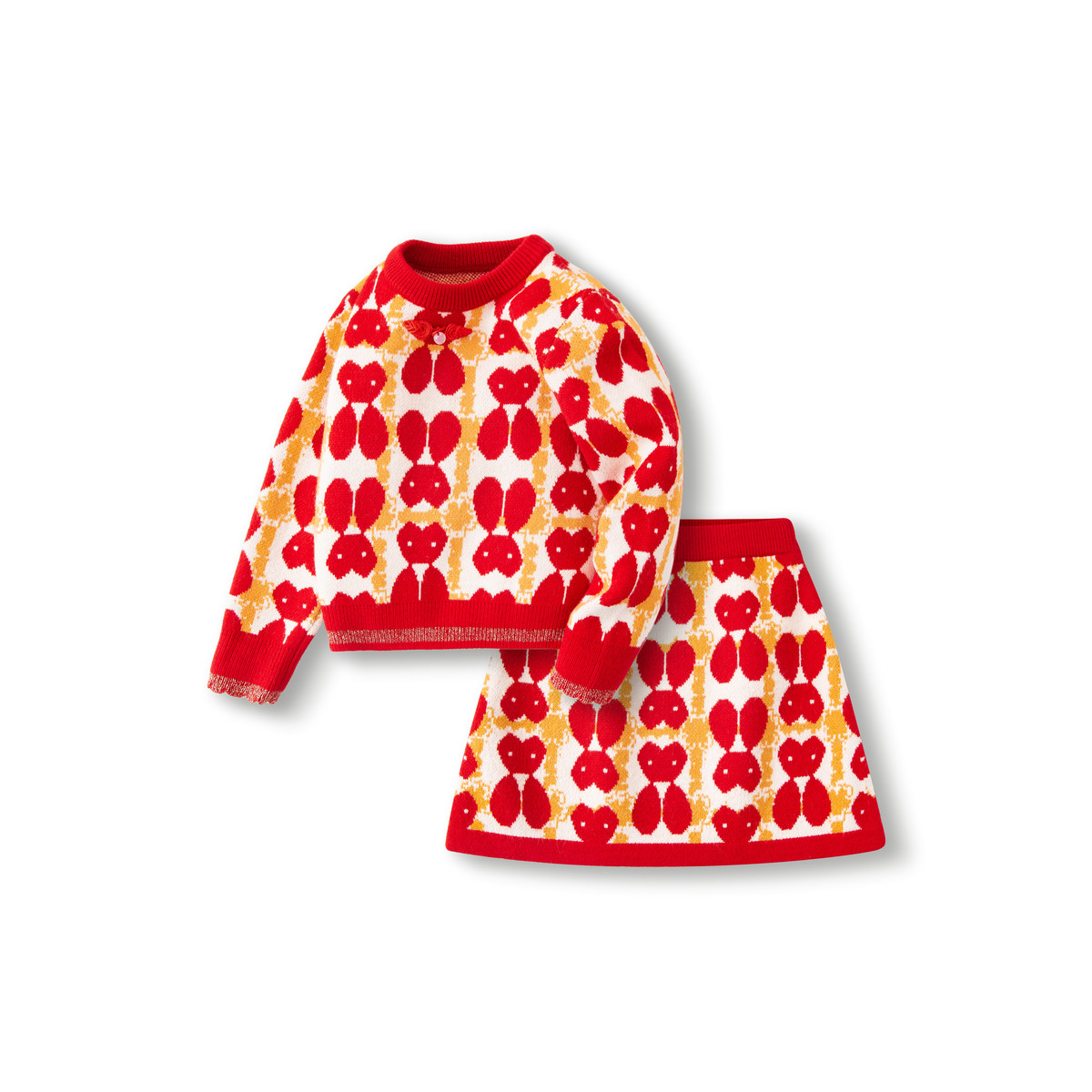 【卡通兔子内衣内裤春装礼盒装】儿童男童女童红色中大童套装 412293
