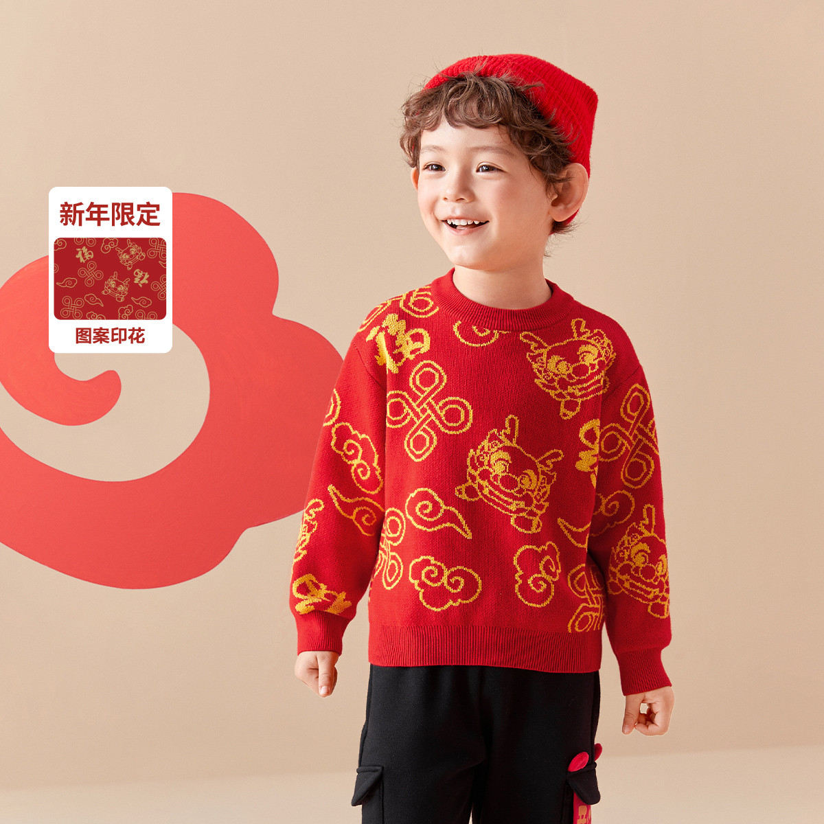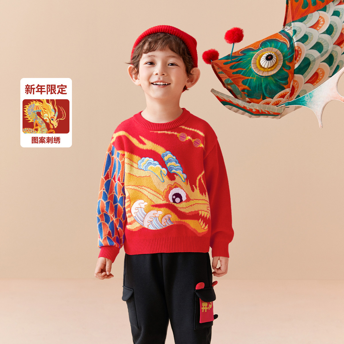 国风生肖刺绣儿童毛衣男童女童童装春秋套头针织衫 547525
