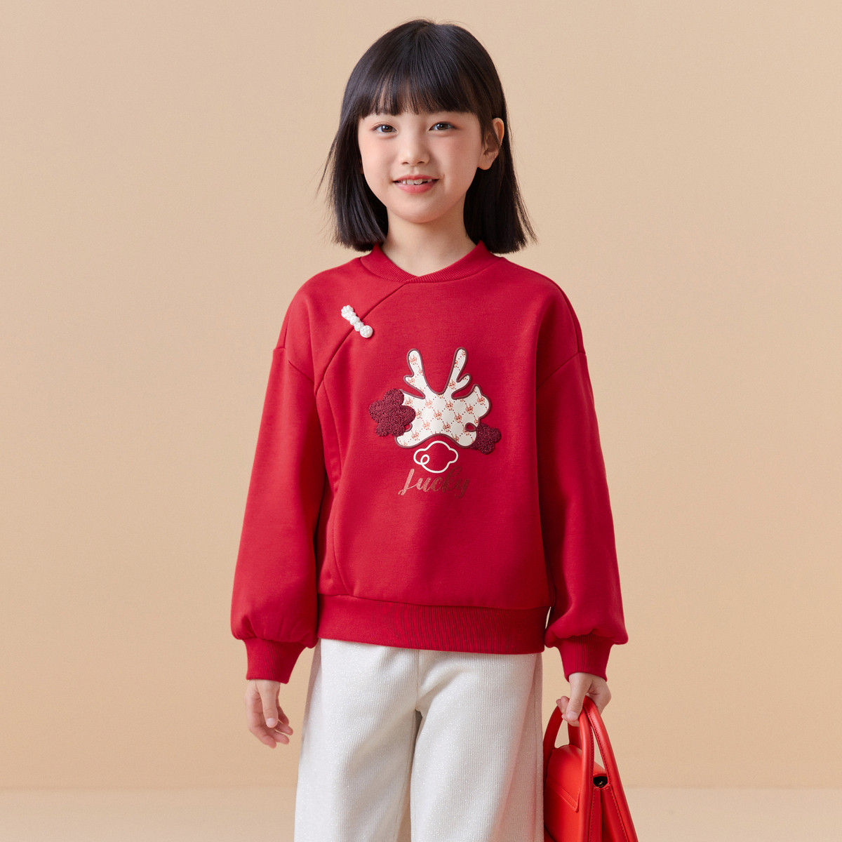国风盘扣加绒女童卫衣儿童上衣春秋款中大童套头国潮设计立体印花 325701