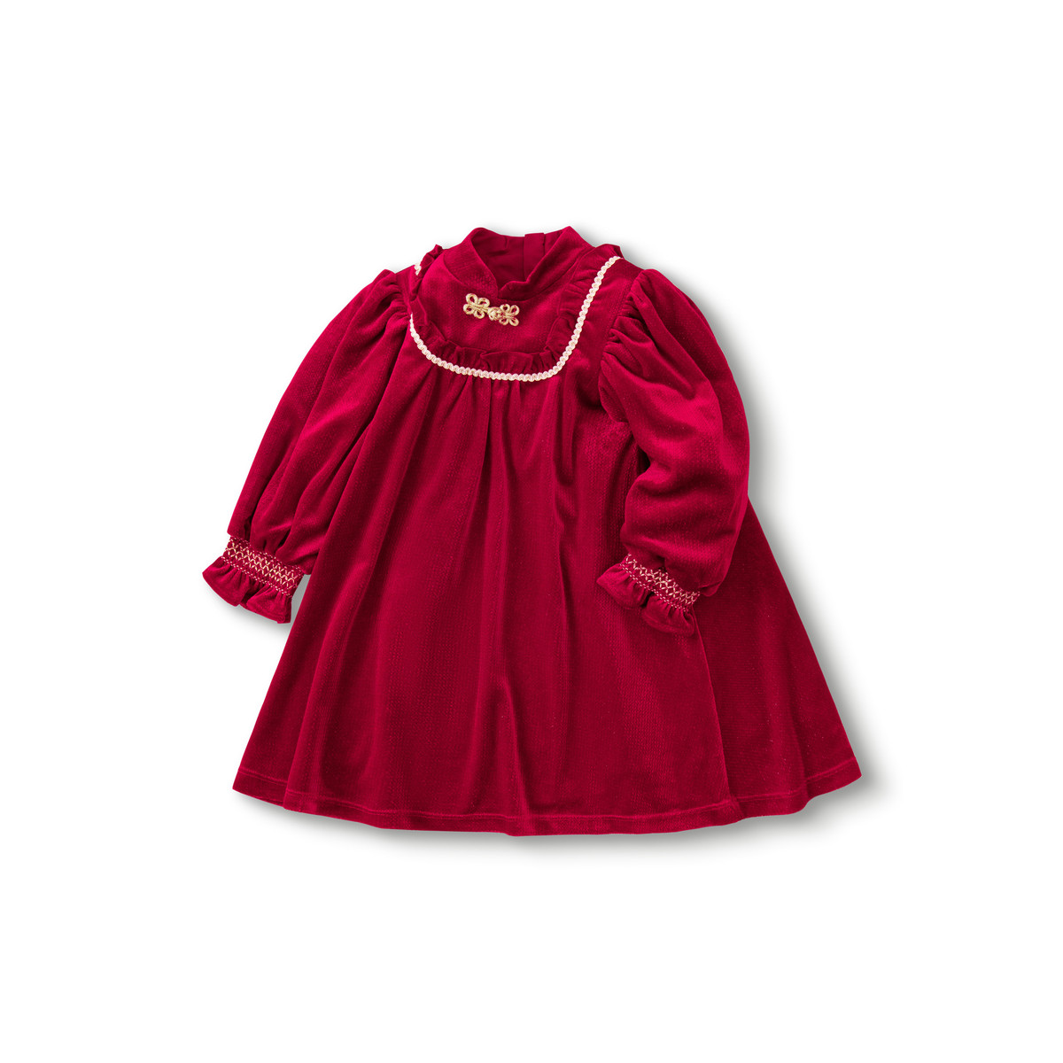 千金风丝绒公主裙女童连衣裙儿童裙子春秋款服红色裙装宝宝小童 985029