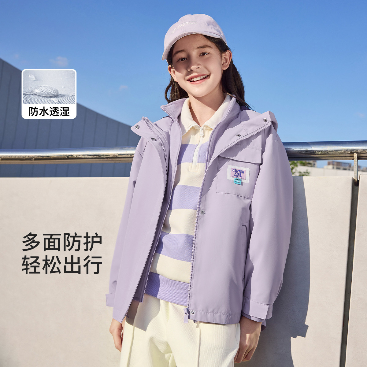 一衣三穿防水透湿连帽两件套女童外套春秋中大童防风 303237
