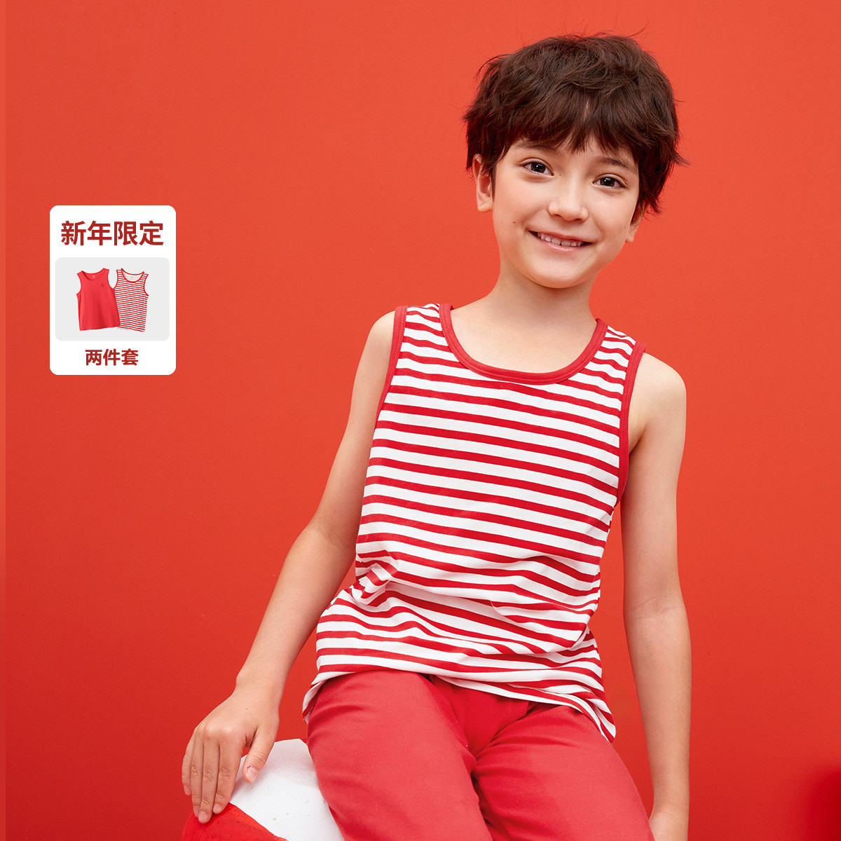 汪满田鱼灯联名男童女童背心龙年本命年红亲肤棉两件装打底上衣 384005