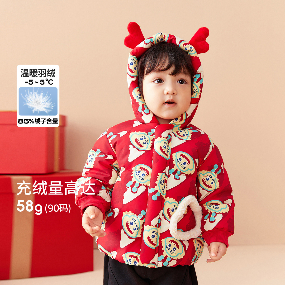 麦大姐联名国风印花连帽婴幼羽绒服短款童装男童女童春秋装外套 094789