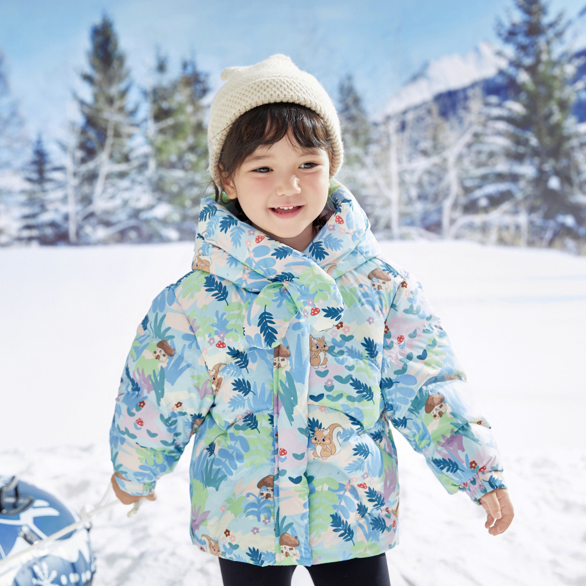 巴拉巴拉童装女童羽绒服儿童保暖连帽外套小童宝宝冬装时髦花版潮 001733