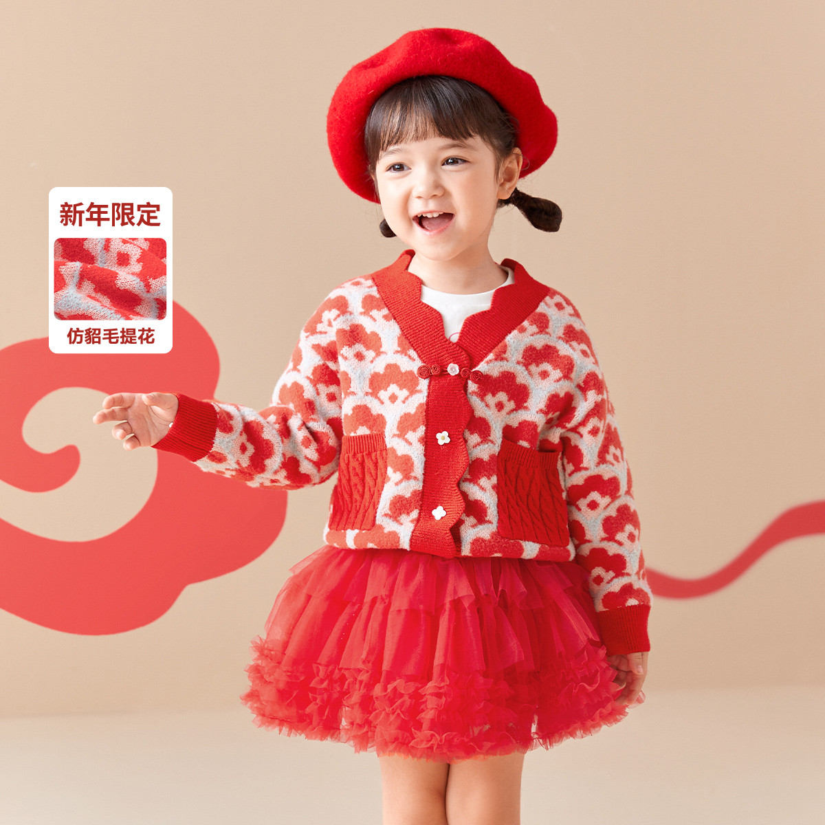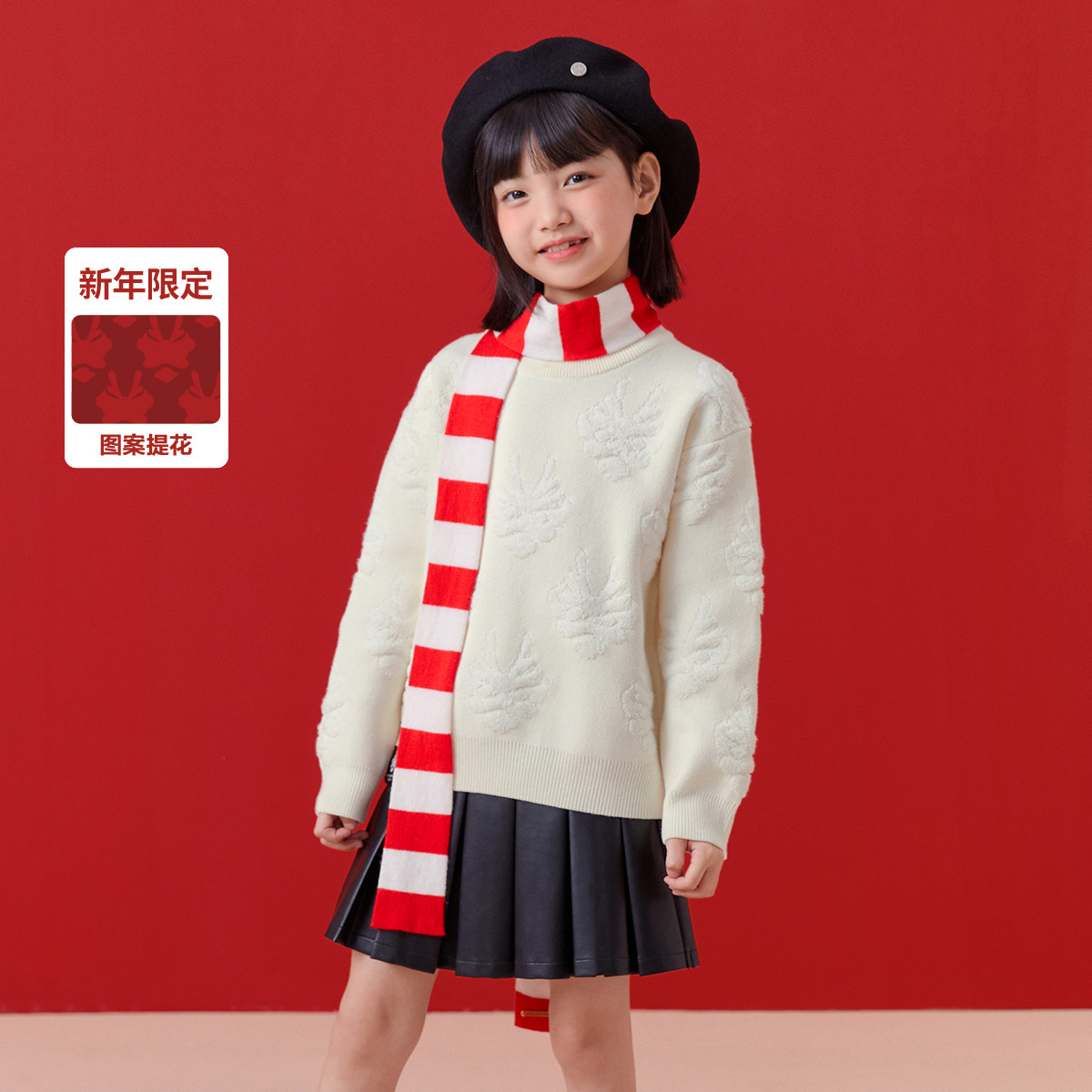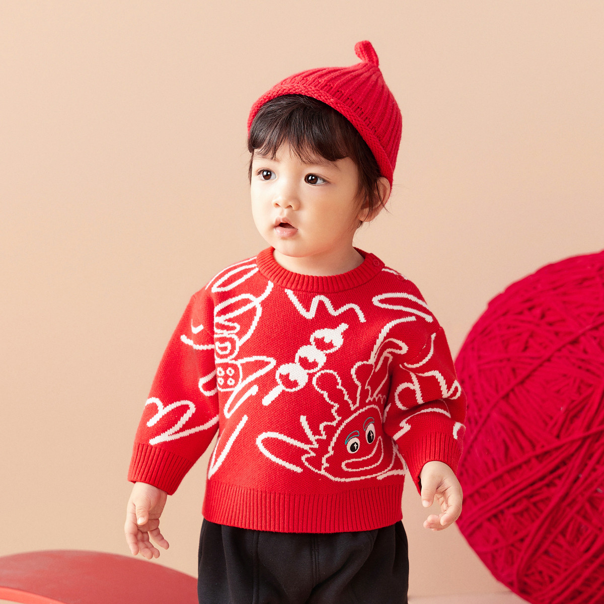 龙纹儿童毛衣男童女童圆领毛衫春秋装红色针织衫洋气上衣亲子装 311237