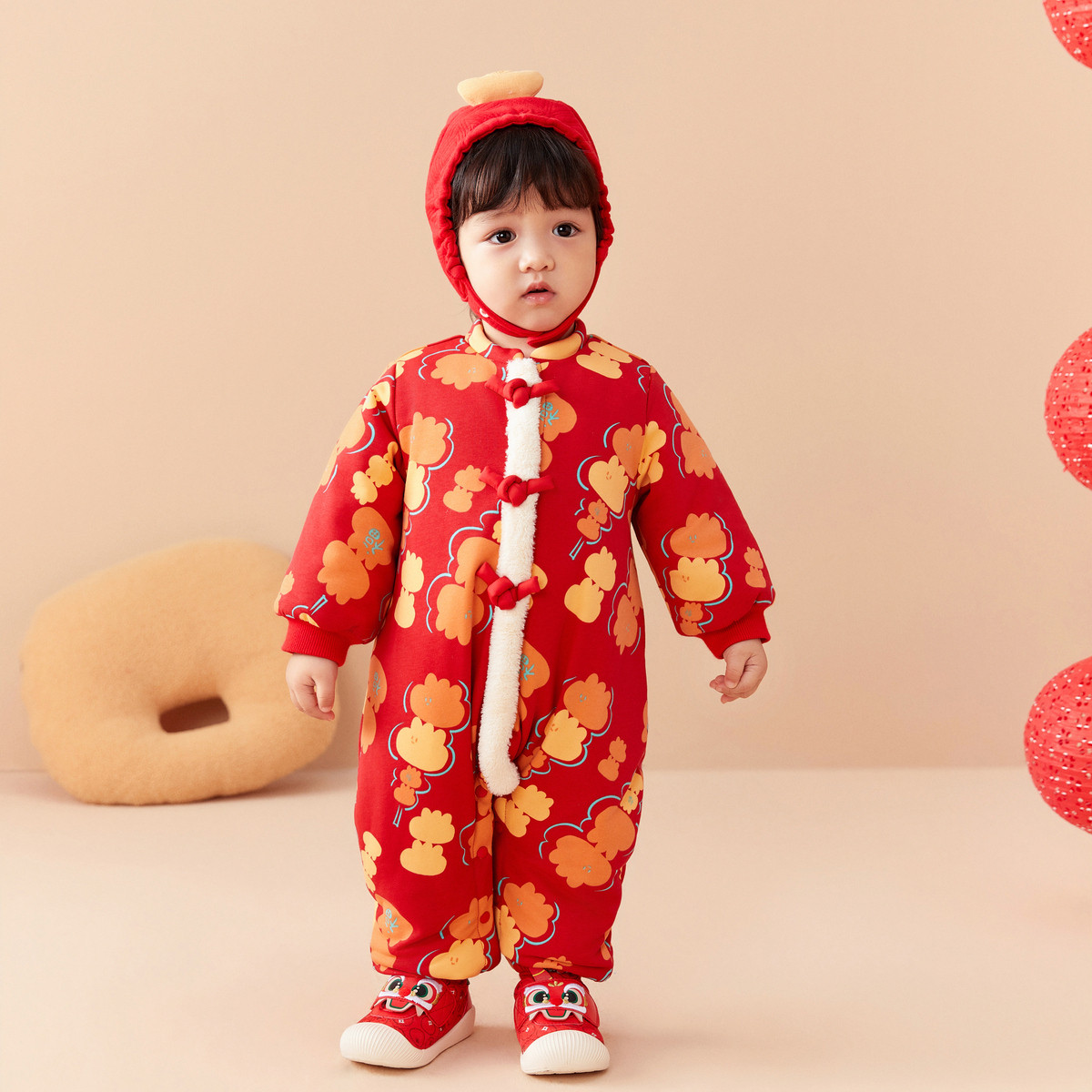 麦大姐联名春秋婴儿连体衣新生儿哈衣爬服年周岁礼服男童女童宝宝 636357
