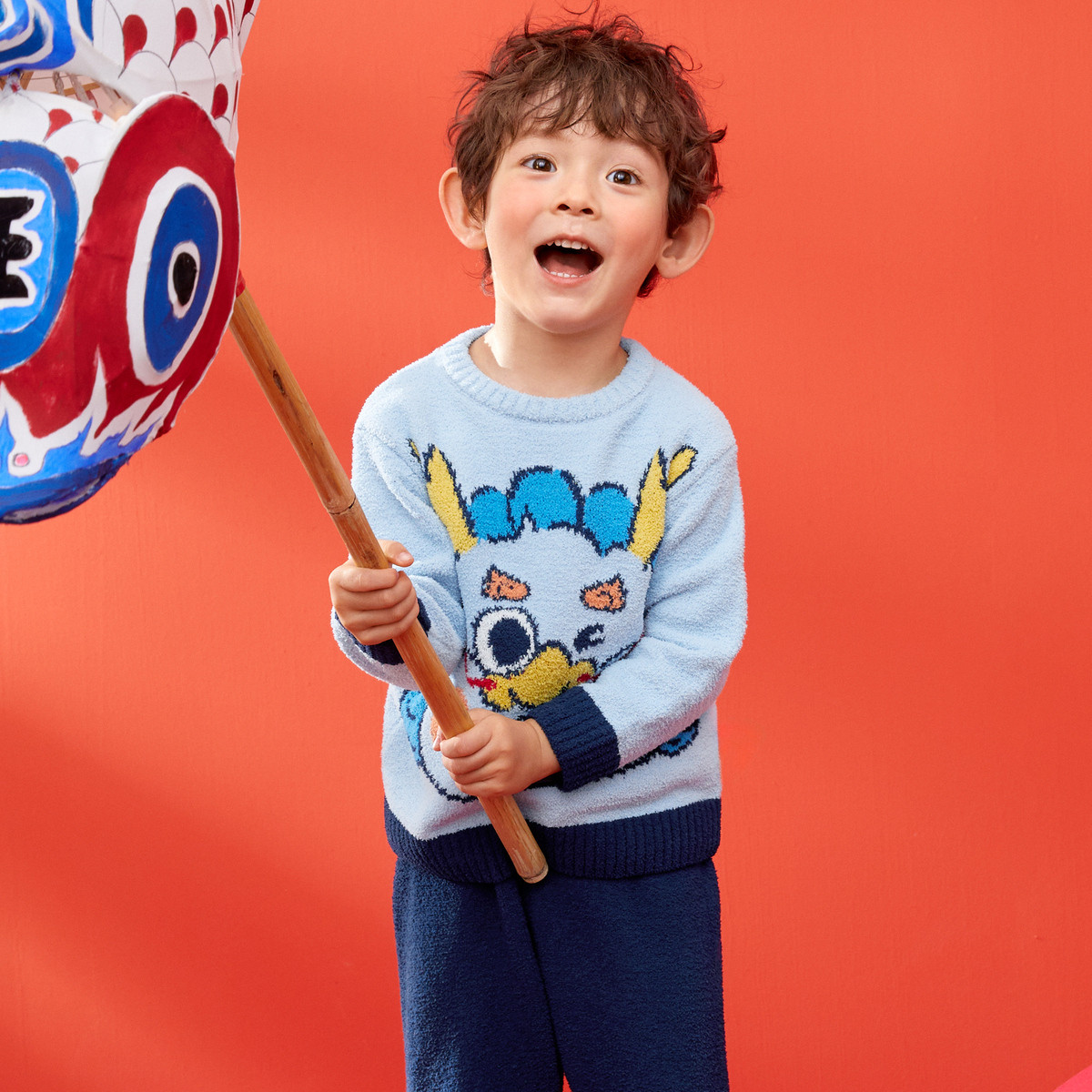 汪满田鱼灯联名龙年本命年红色睡衣套装加绒保暖男童女童家居服 537093
