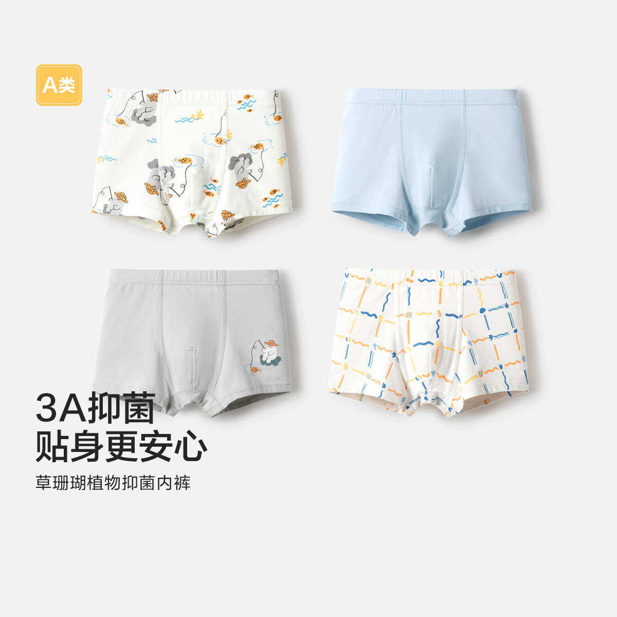 抑菌儿童内裤成长期男童平角裤棉a类四角短裤透气不夹PP四条装 900613