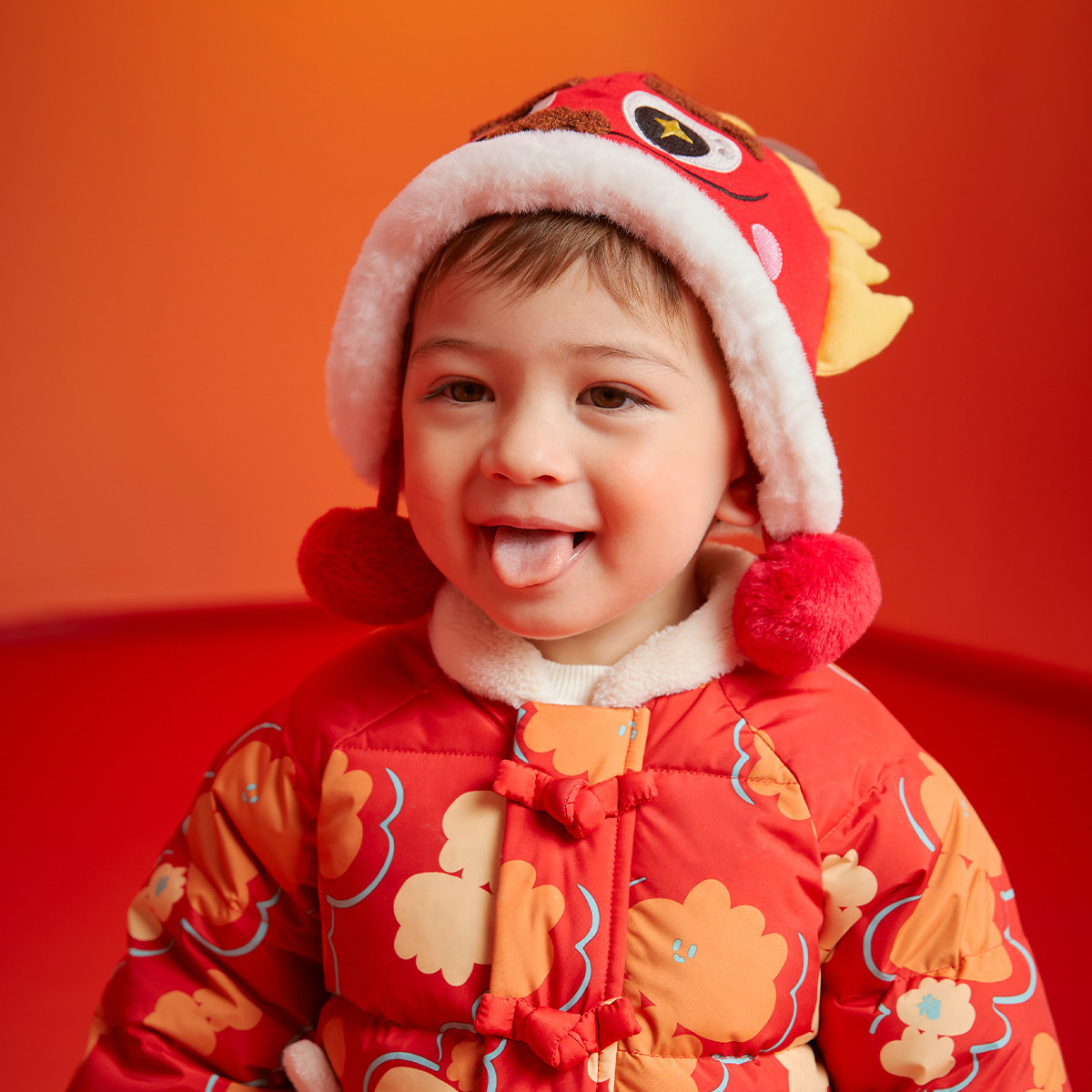 宝宝帽子龙年男童女童保暖帽加绒防风本命年红色喜庆立体萌趣造型 409221
