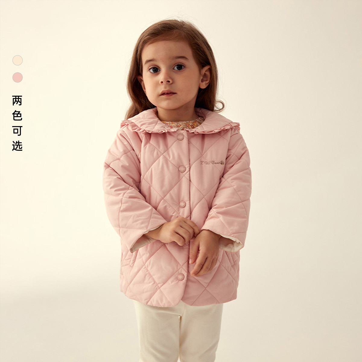 小熊童装春款女宝宝保暖翻领花边领棉服 727553