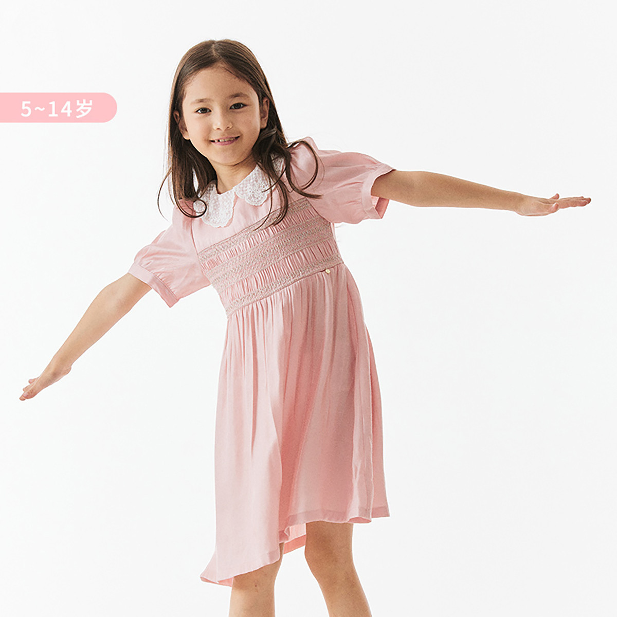 【公主裙】小熊童装女童时尚气质短袖公主连衣裙 665793