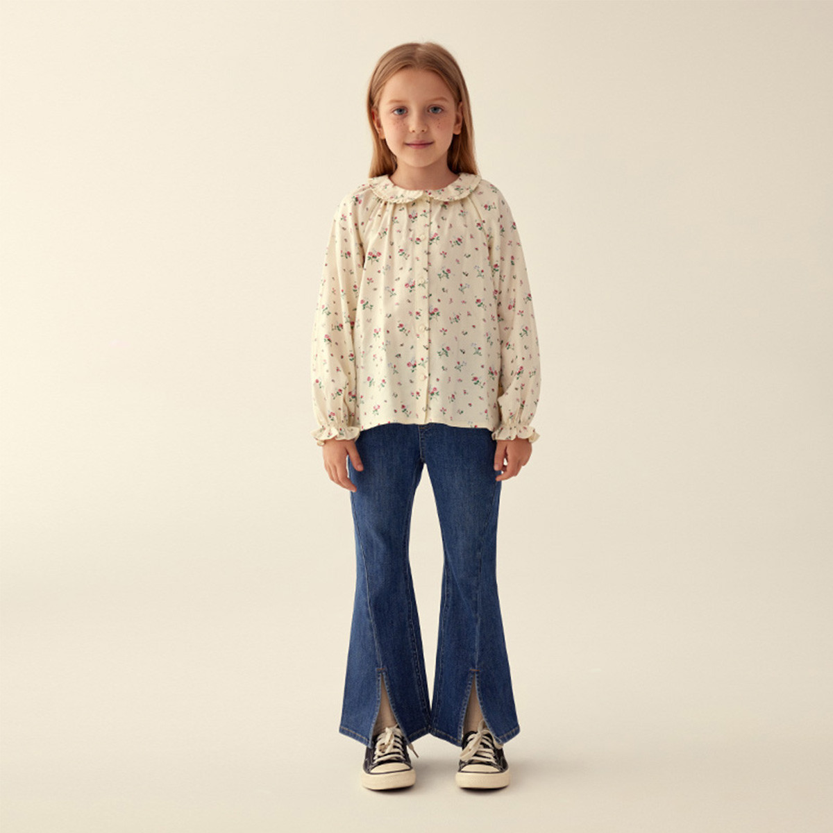 小熊童装春季女童复古甜美碎花翻领衬衫 783297