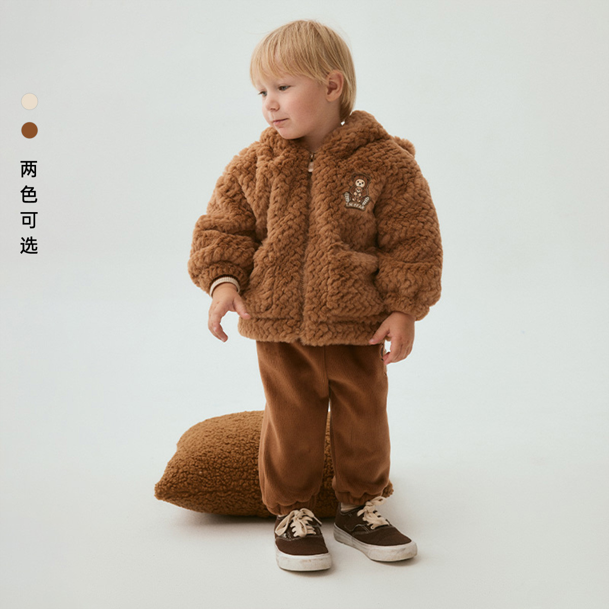 小熊童装春季款男女宝宝毛绒连帽棉服外套 400769