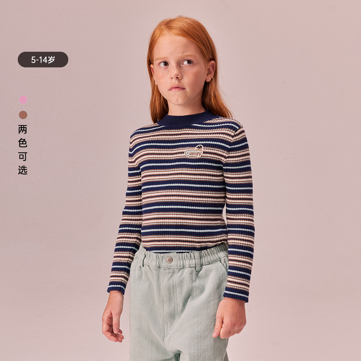 小熊童装女童秋冬半高领打底衫毛衣 950273