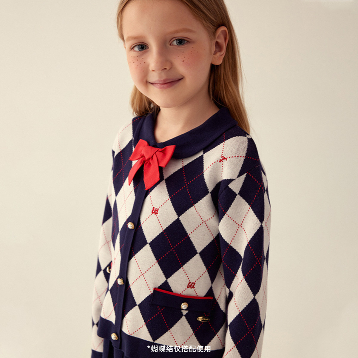 小熊童装女童冬季学院毛衣百褶半身裙套装 104065