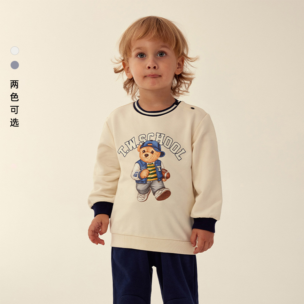 小熊童装男宝宝秋季宽松小熊印花卫衣 905217