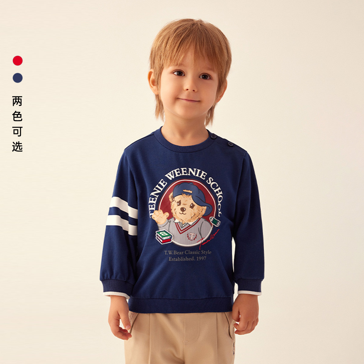 小熊童装春季款男宝宝休闲圆领印花卫衣 805377