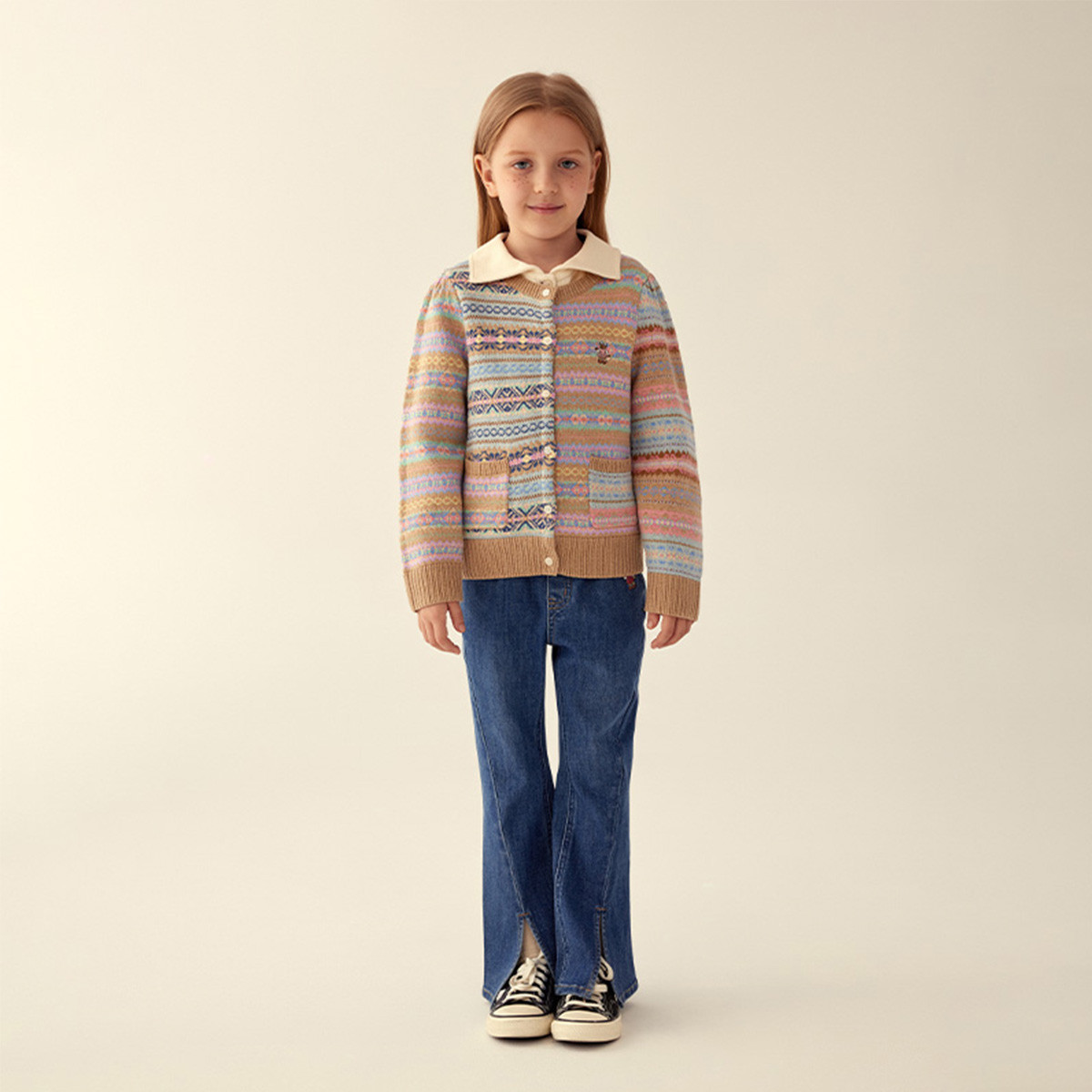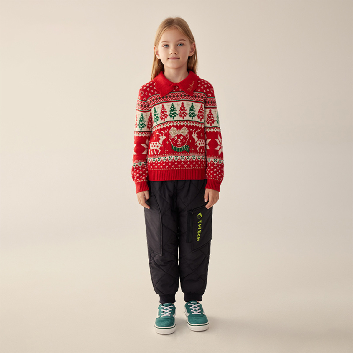 小熊童装女童秋冬彩色提花针织毛衣 389505
