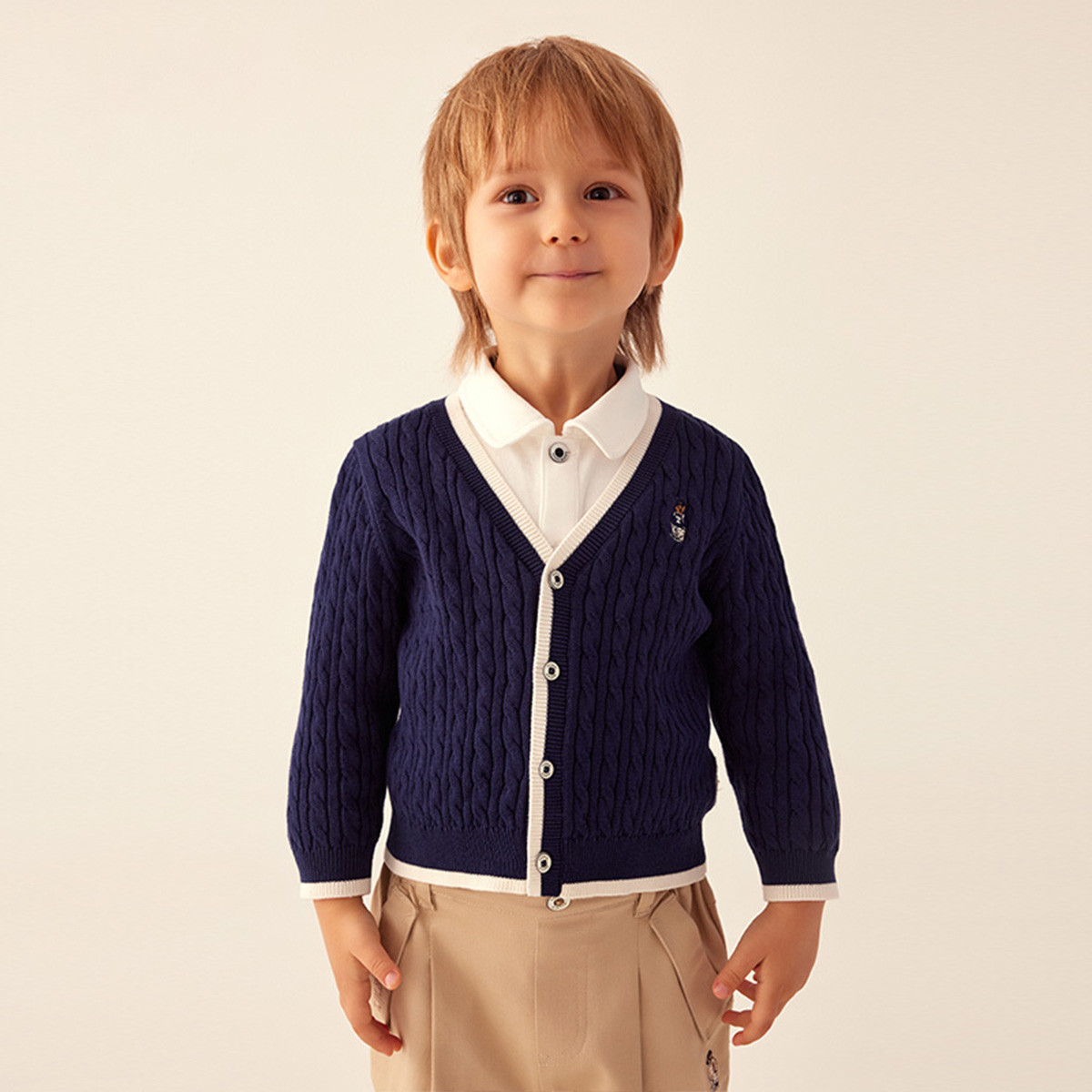 小熊童装男宝宝秋季经典麻花纹针织开衫 835585