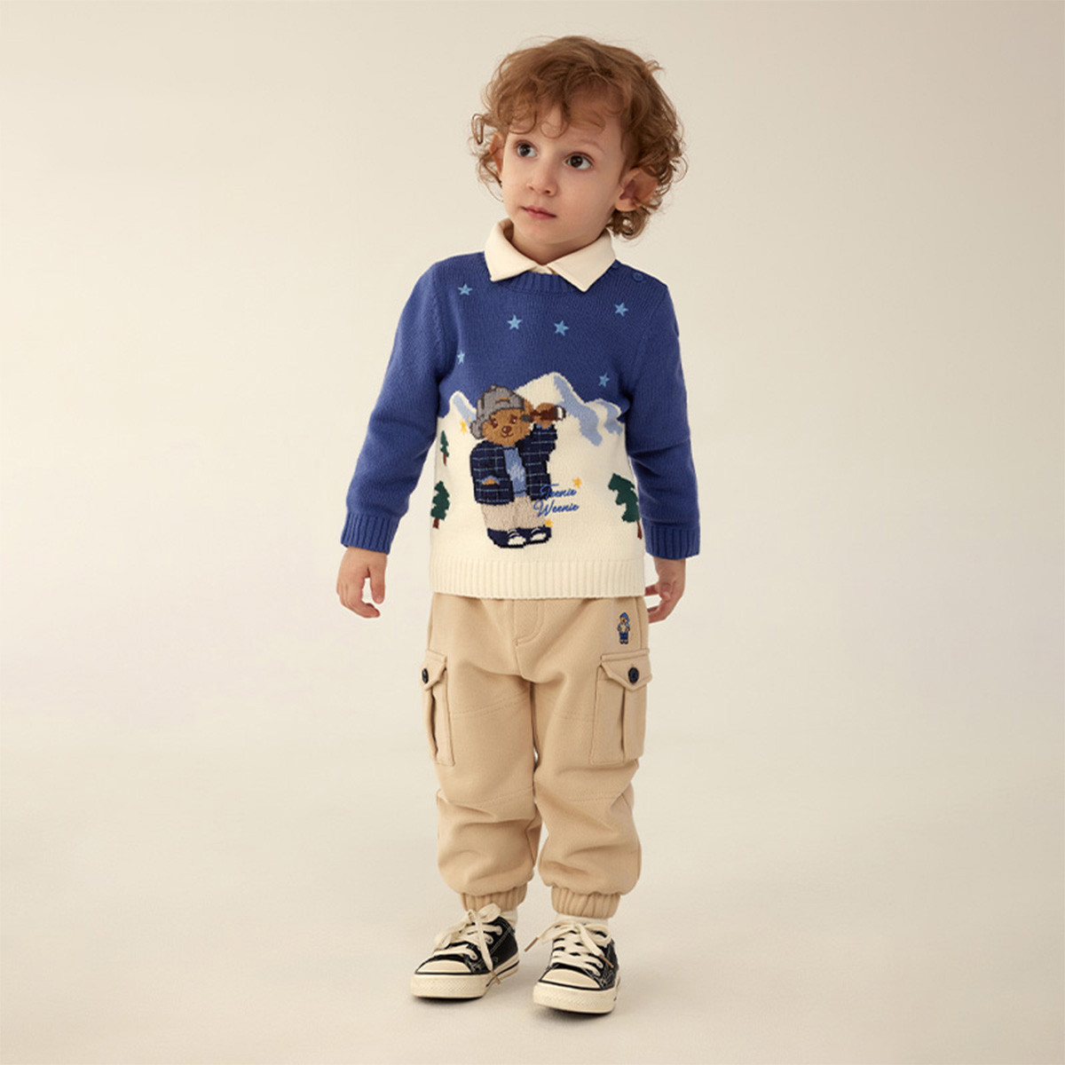 小熊童装秋冬男宝宝圆领羊毛混纺毛衣 437761