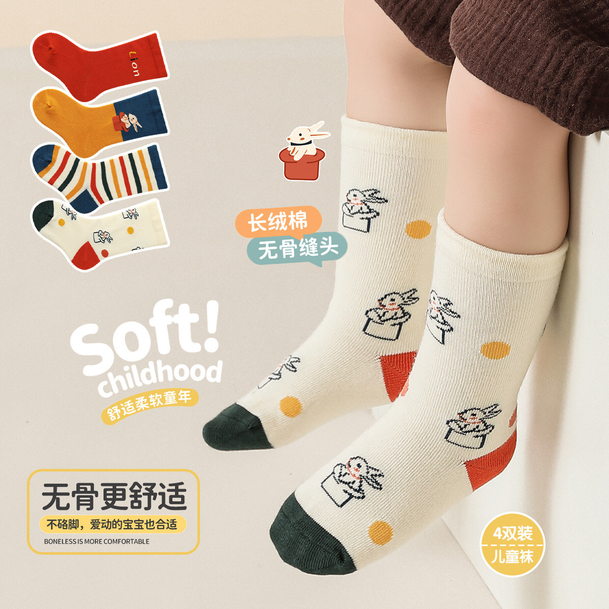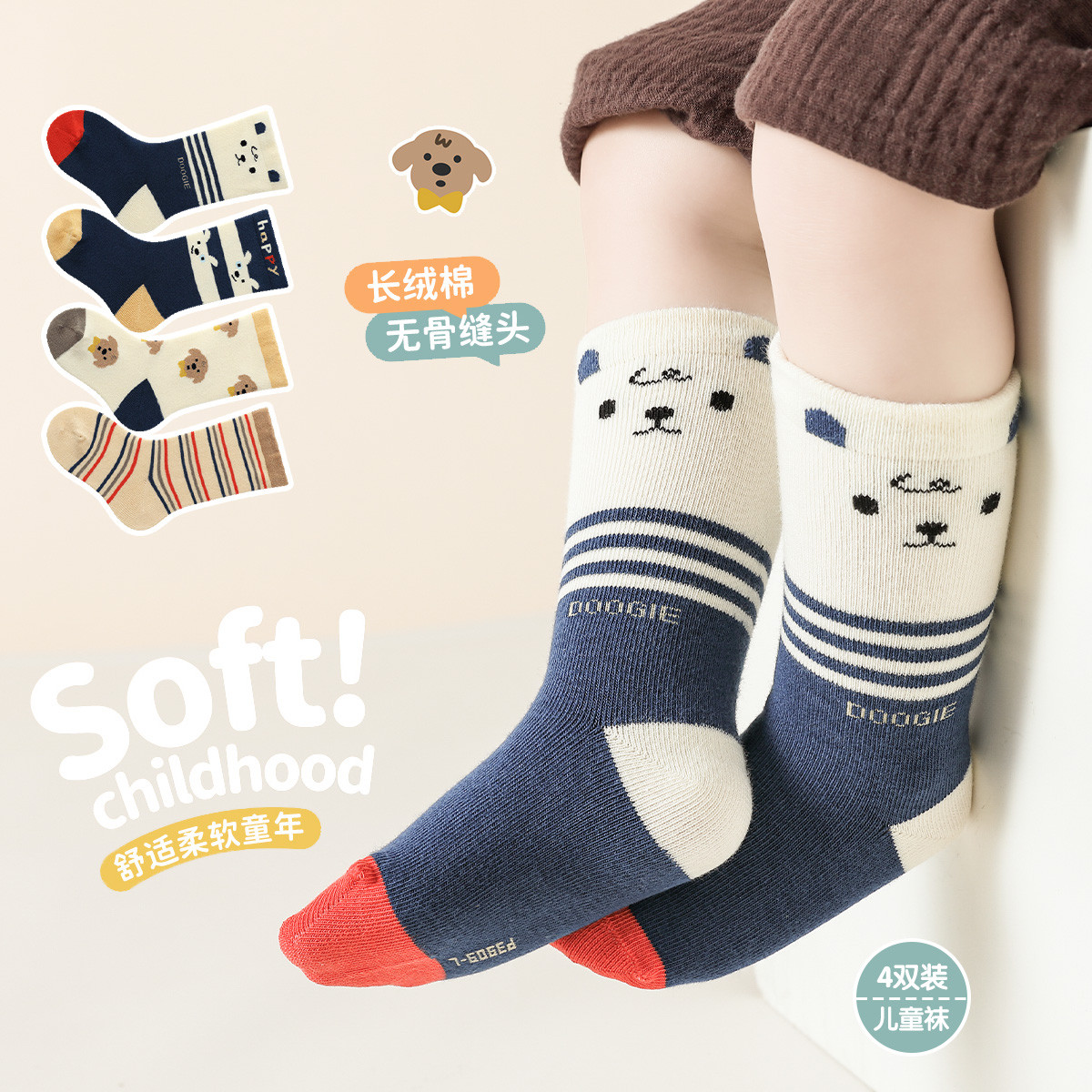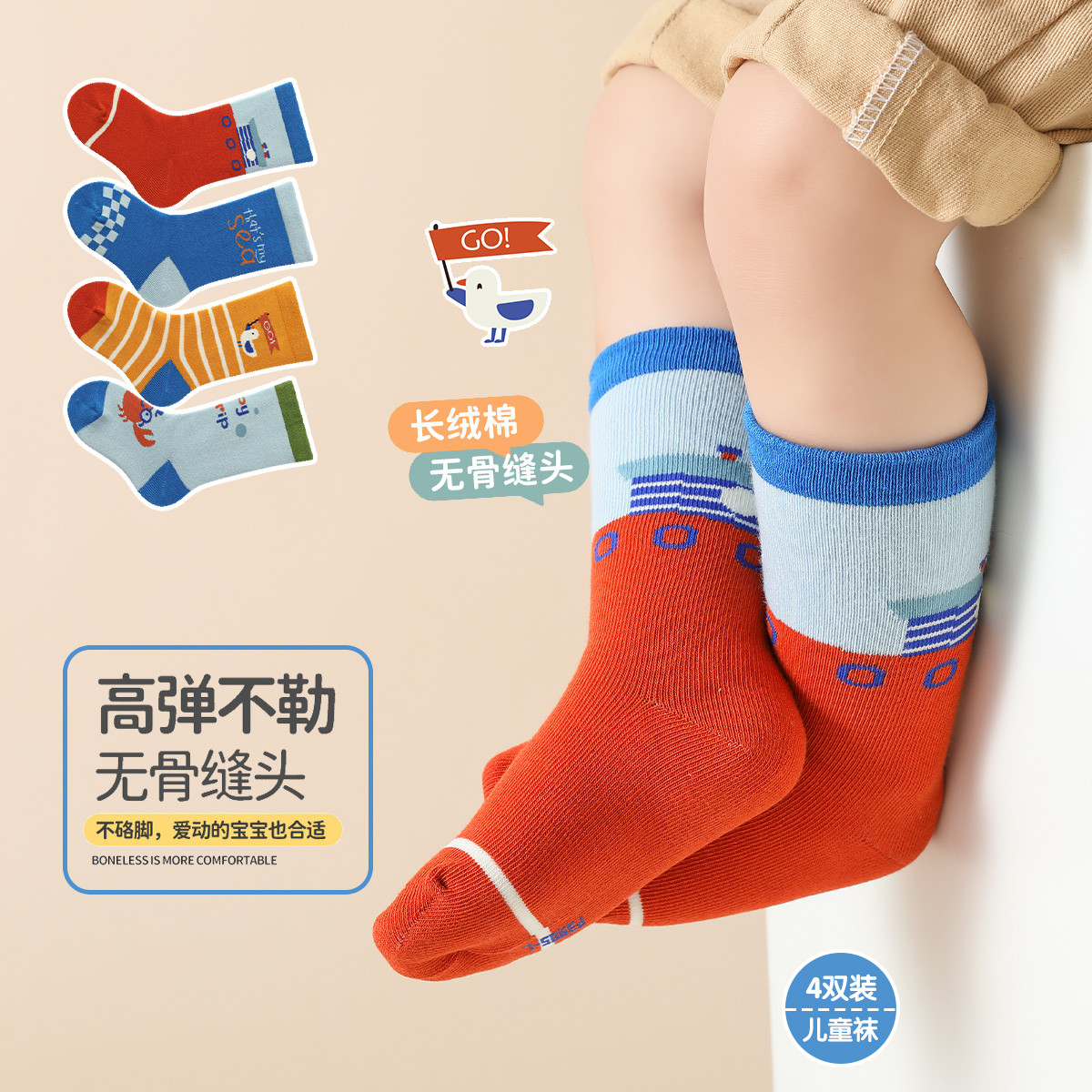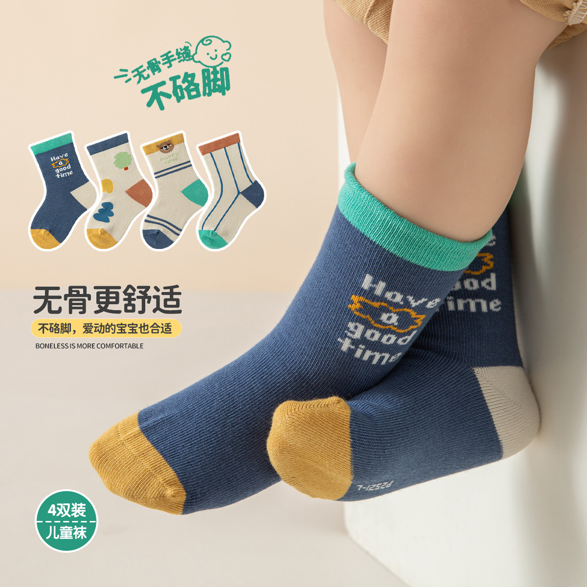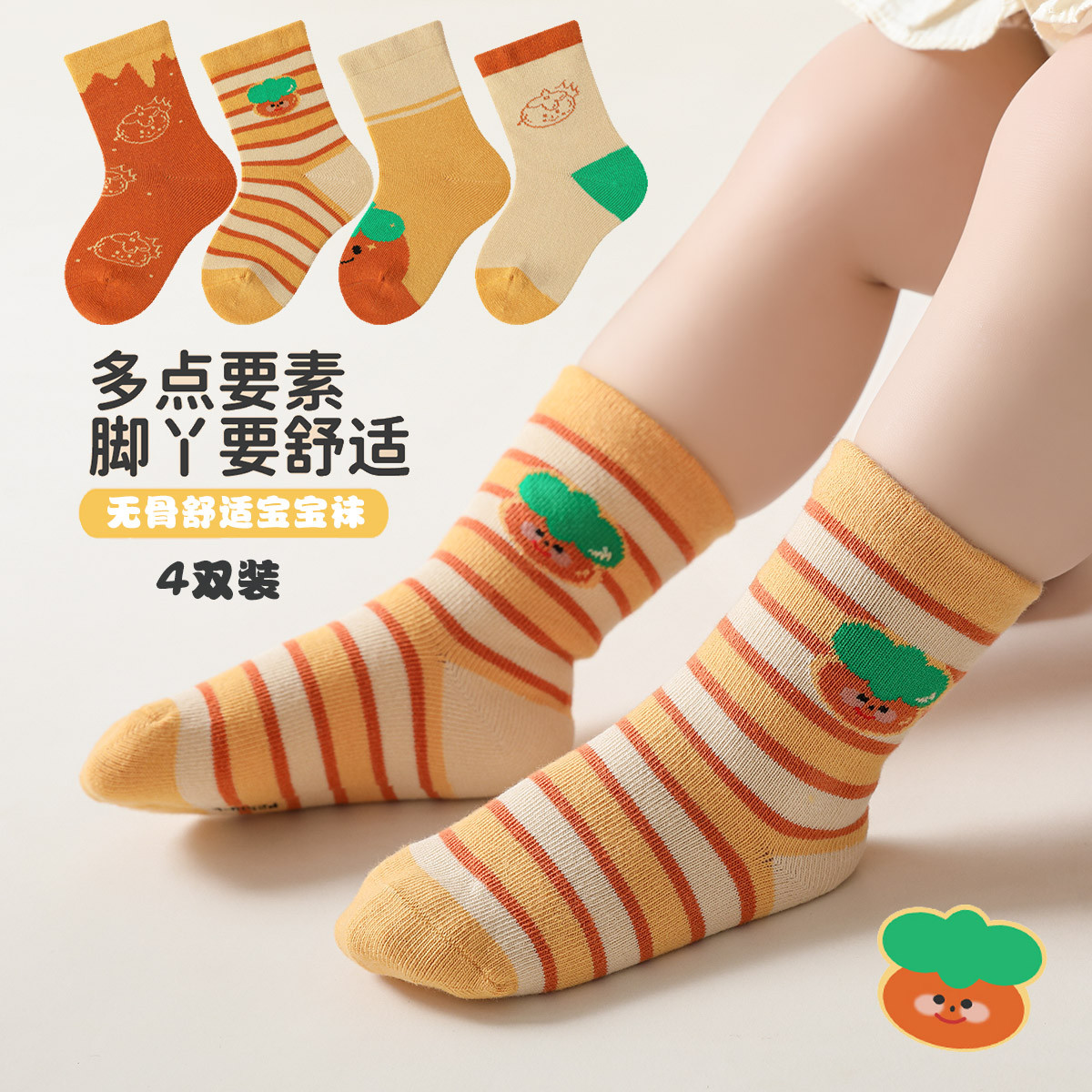 【4双装婴童袜】新生儿袜子婴儿亲肤袜子小童舒适宝宝儿童袜子 829903