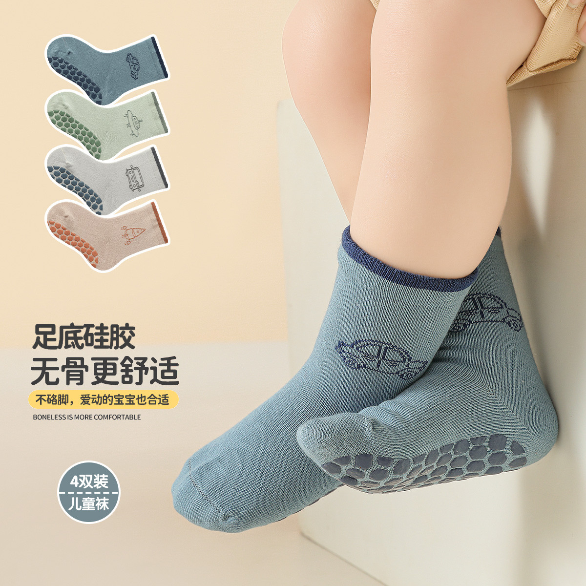 【4双装婴童袜】婴儿袜子春秋宝宝舒适无骨地板袜防滑室内学步袜 833999