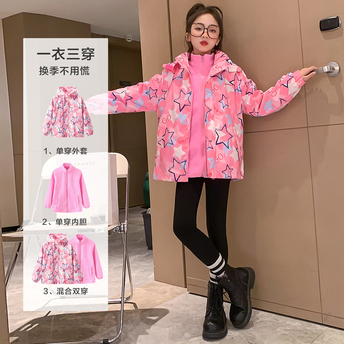 【一衣三穿】女童外套春秋外套洋气时尚儿童中大童摇粒绒外套 575695