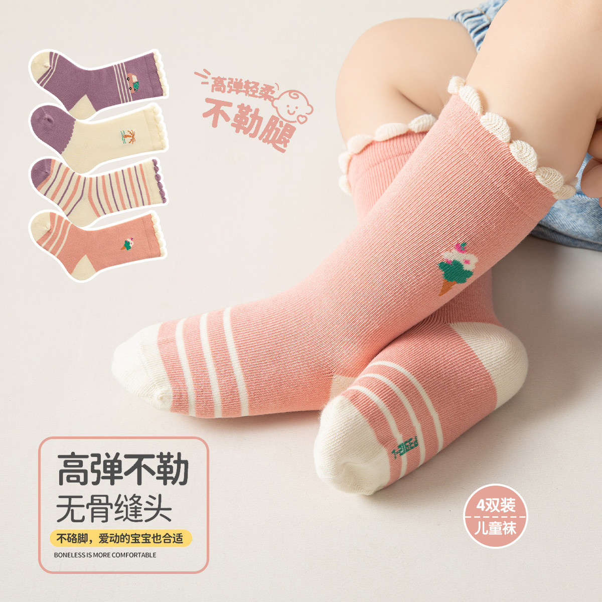 【4双装婴童袜】新生儿袜子婴儿亲肤袜子小童舒适宝宝儿童袜子 784847