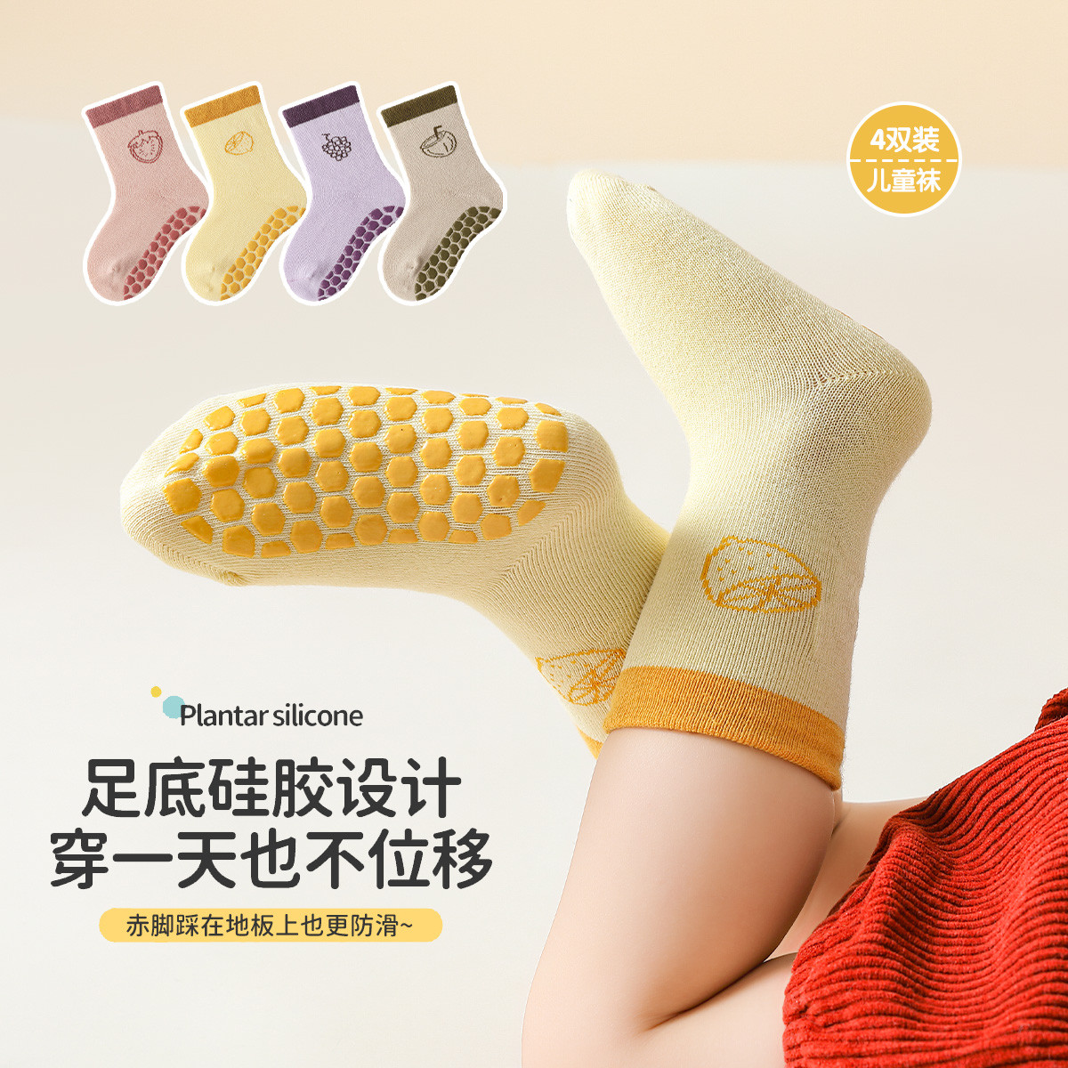 【4双装婴童袜】婴儿袜子春秋宝宝舒适无骨地板袜防滑室内学步袜 924111