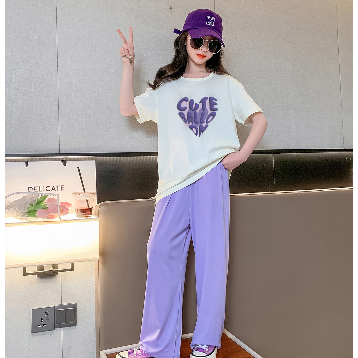 女童套装儿童T恤套装时尚百搭洋气春夏中大童短袖阔脚长裤套装女 922895