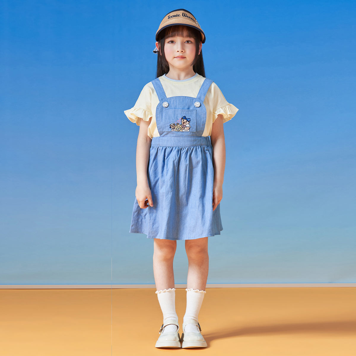 【牛仔裙】小熊童装女童休闲刺绣牛仔背带裙 116225