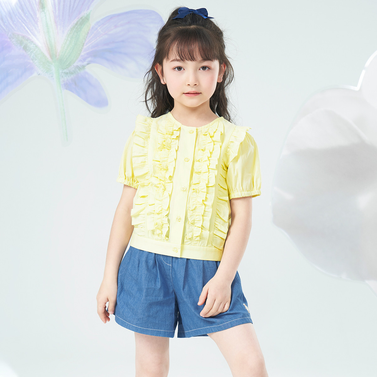 小熊童装女童可爱棉质圆领短袖衬衫 895937