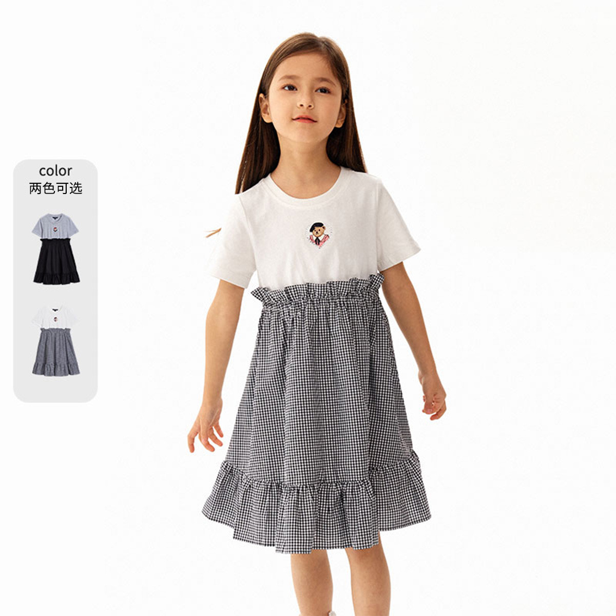 小熊童装女童夏优雅拼接设计感连衣裙 493121