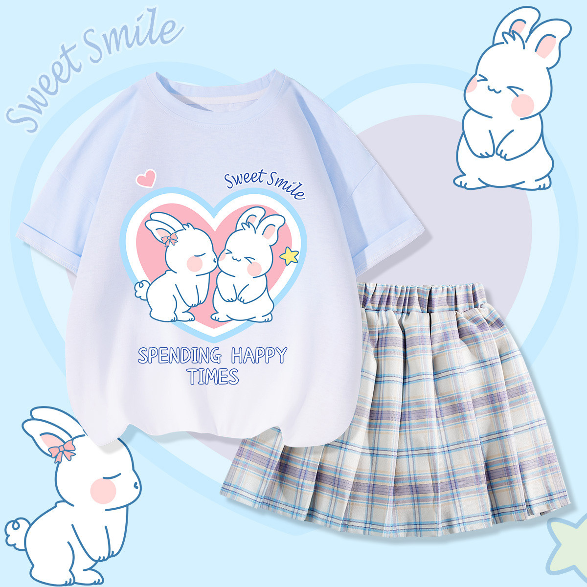 2025夏季女童套装甜美可爱短袖T恤百搭短裙中大童两件套 302879