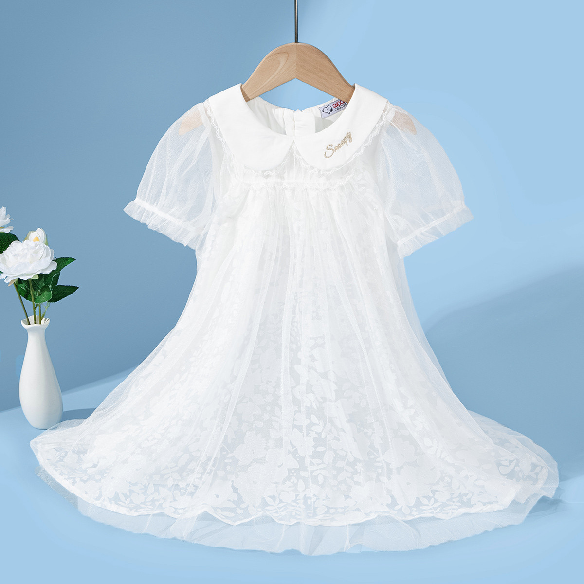【轻薄透气网纱蓬蓬裙】女童连衣裙夏季儿童娃娃领泡泡袖公主裙 693784