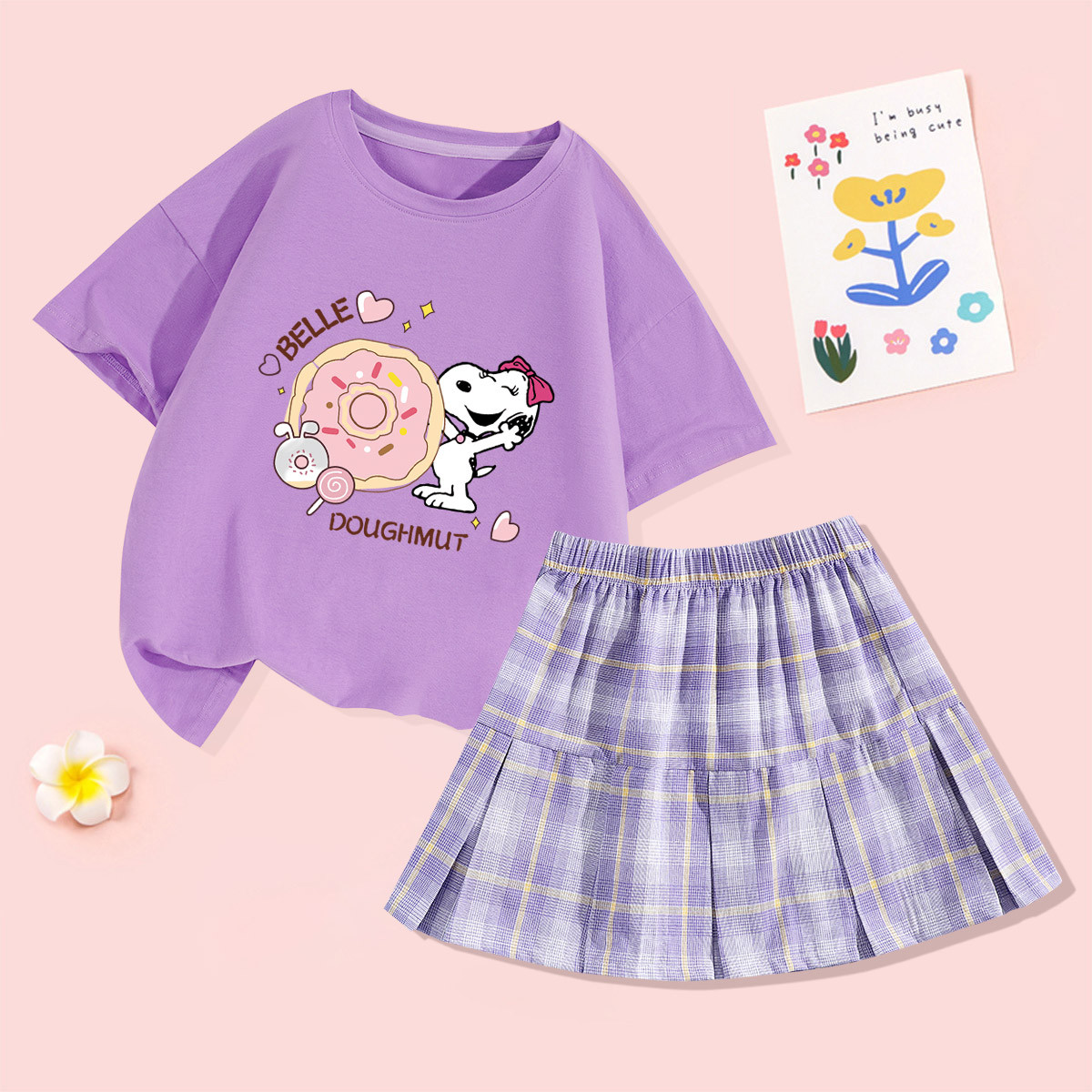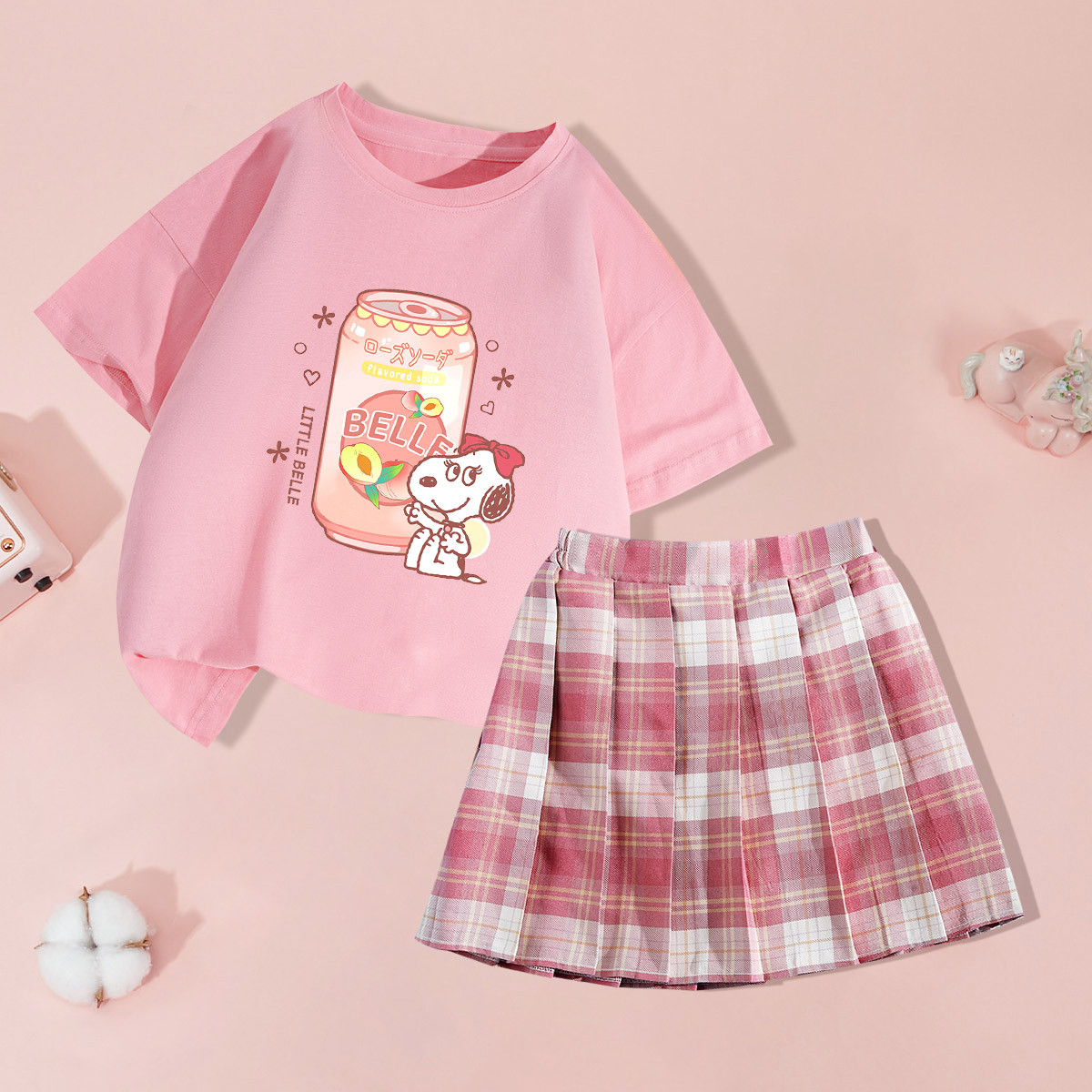 女童套装夏季2025卡通可爱儿童T恤甜美百搭短裙两件套 130847