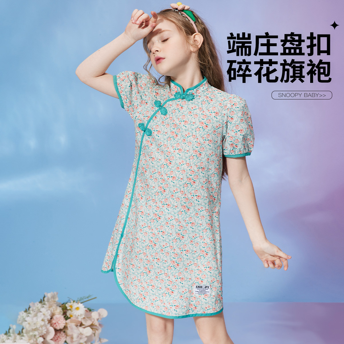 【碎花旗袍裙】女童连衣裙夏季中大童碎花甜美纯棉新中式旗袍 579999
