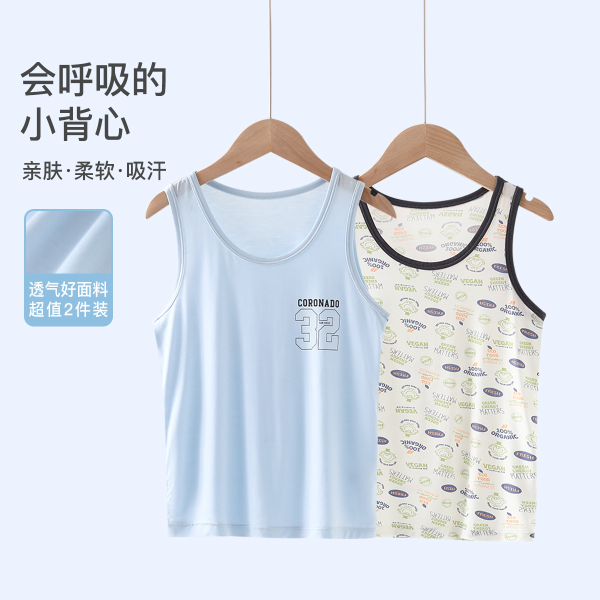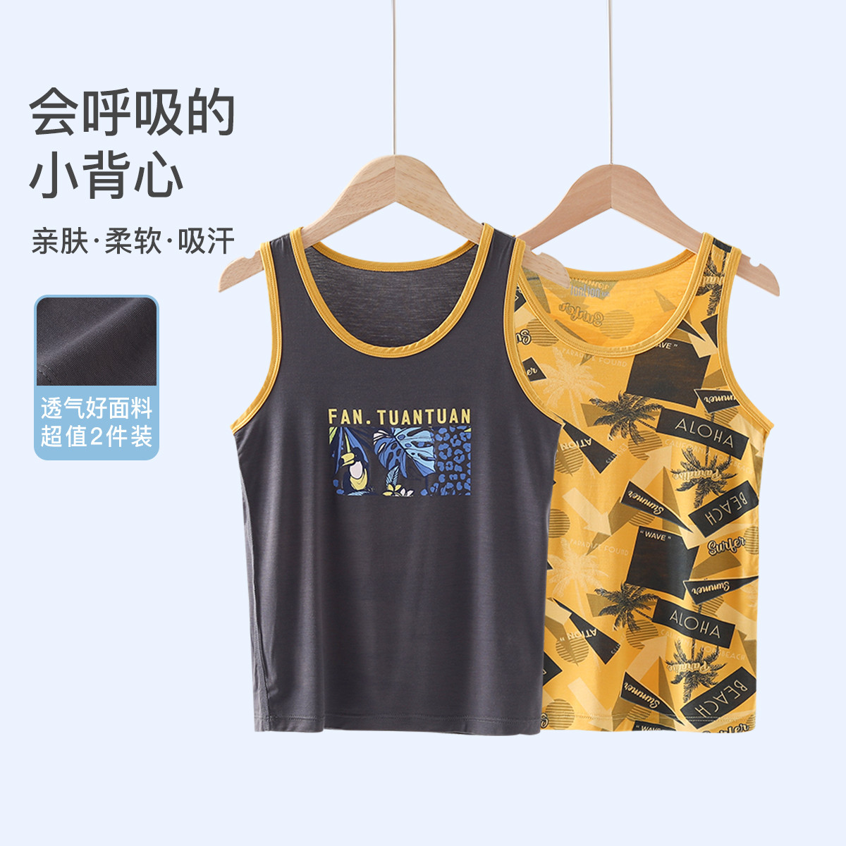 【两条装】儿童莫代家居背心尔男孩春秋中大童儿童上衣轻薄透气潮 125455