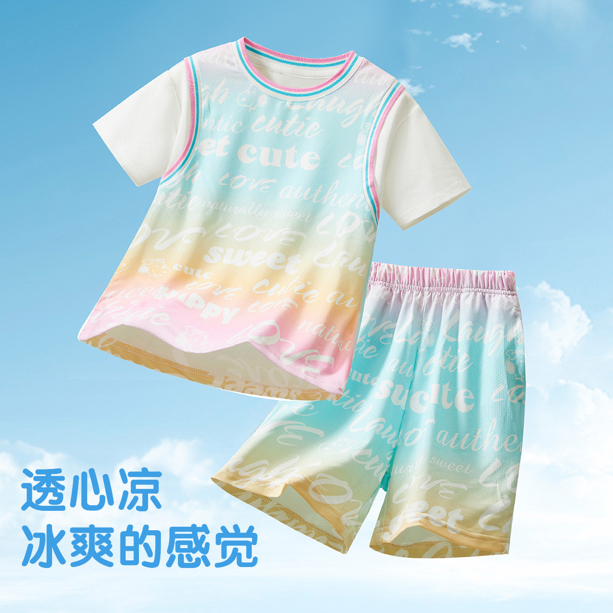 女童套装2024春秋洋气渐变短袖亲肤透气短裙中大童两件套 122447