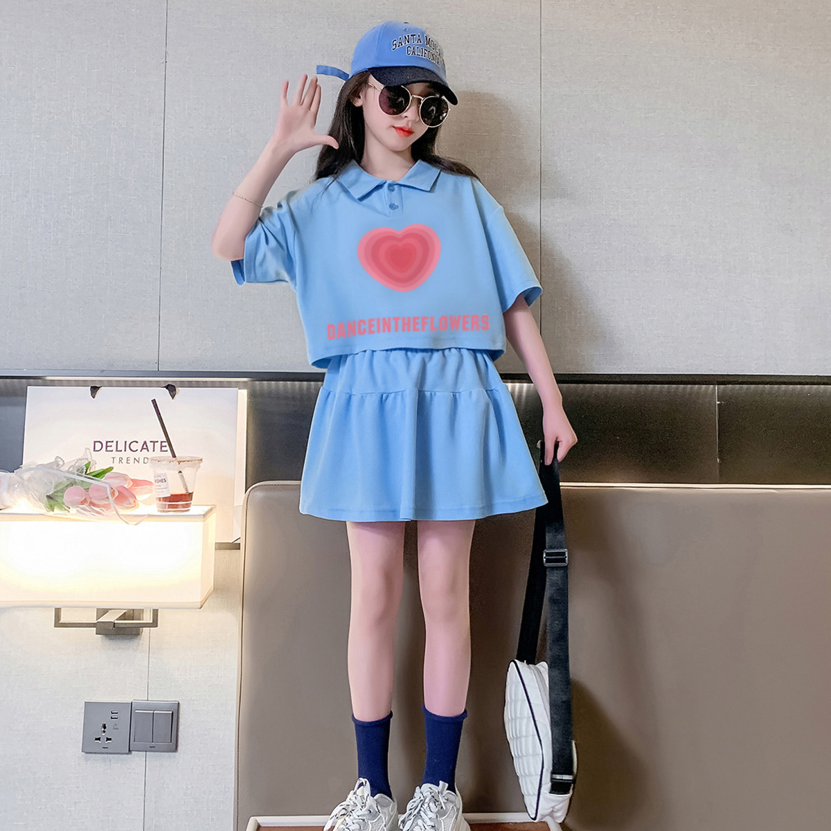 女童套装春夏时髦洋气时尚女孩套装儿童polo短袖休闲短裙套装 220431