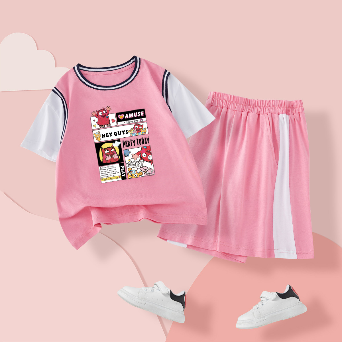 【可爱时尚】女童套装春夏时尚运动短袖短裤套装中大童休闲套装 678927