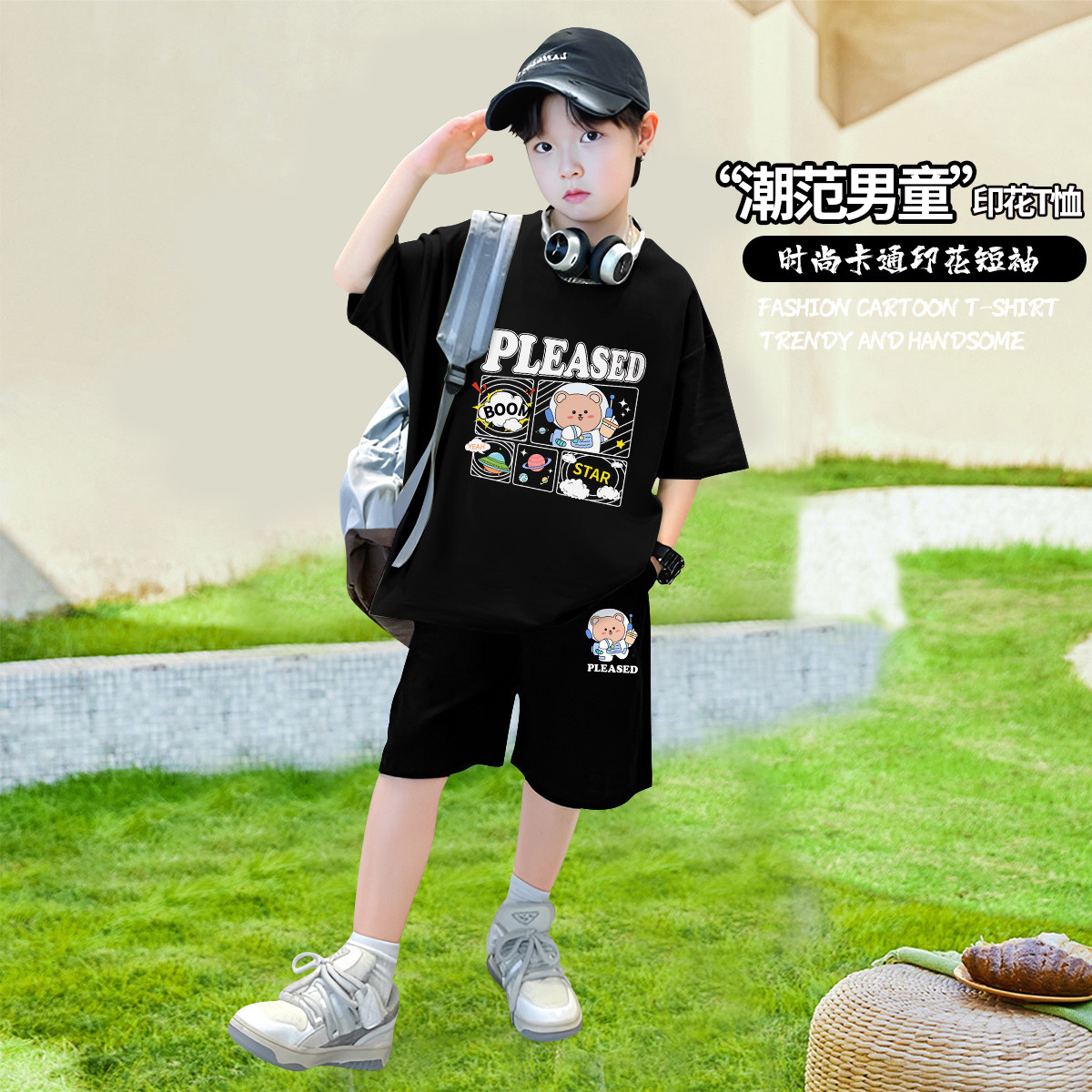 儿童套装夏季男童潮流帅气透气百搭短袖短裤中大童两件套装 565135